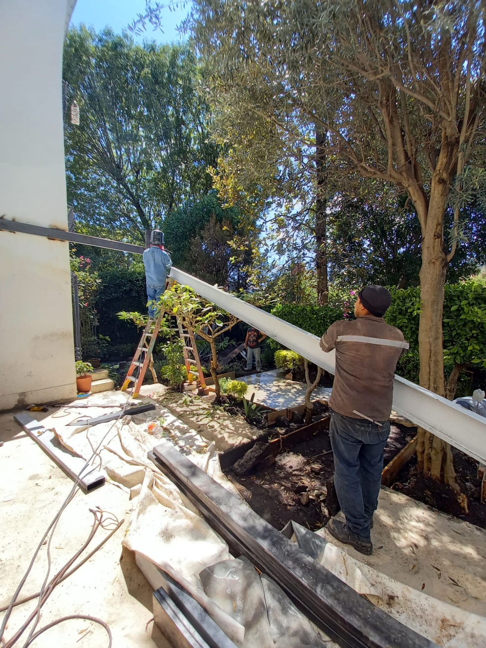 Estructuramos una pérgola en el acceso principal al jardín de este proyecto, generando así sombra y un nuevo vestíbulo para este proyecto.